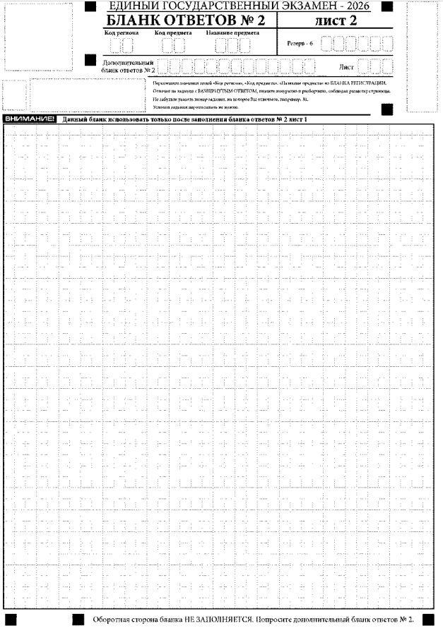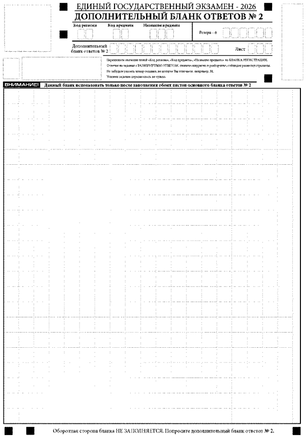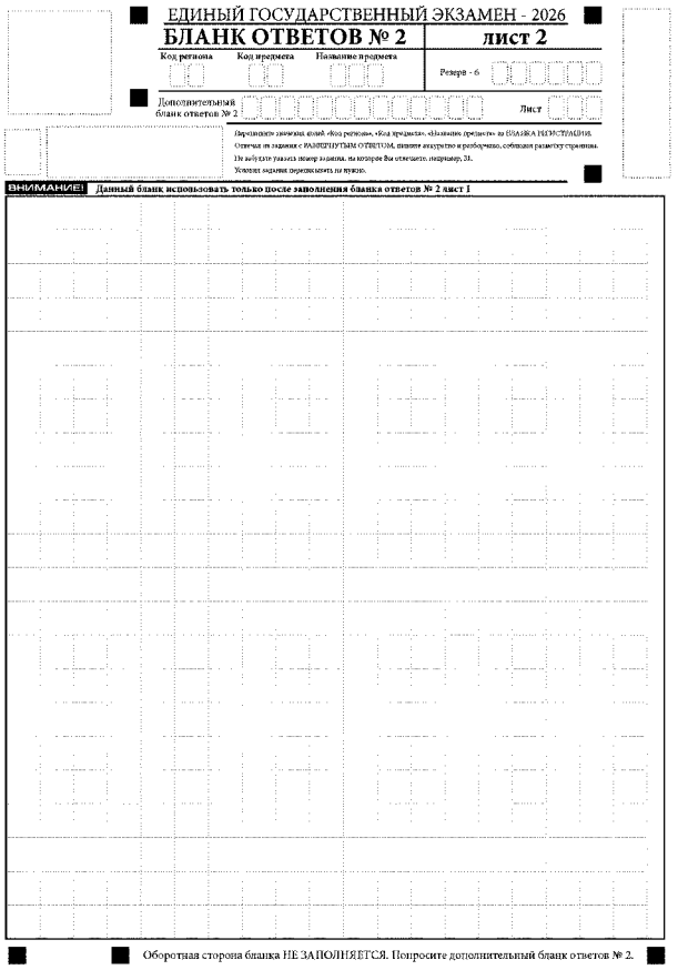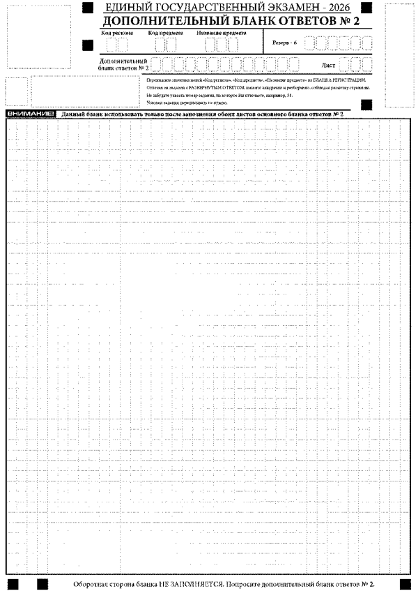 Ответы, внесенные в каждый следующий дополнительный бланк ответов № 2, оцениваются только при наличии полностью заполненного предыдущего дополнительного бланка ответов № 2.
