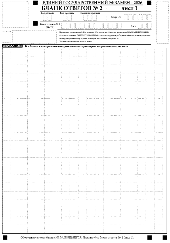 Бланк ответов № 2 (лист 1 и лист 2) предназначен для записи ответов на задания с развернутым ответом (строго в соответствии с требованиями инструкции к заданиям).