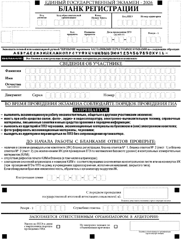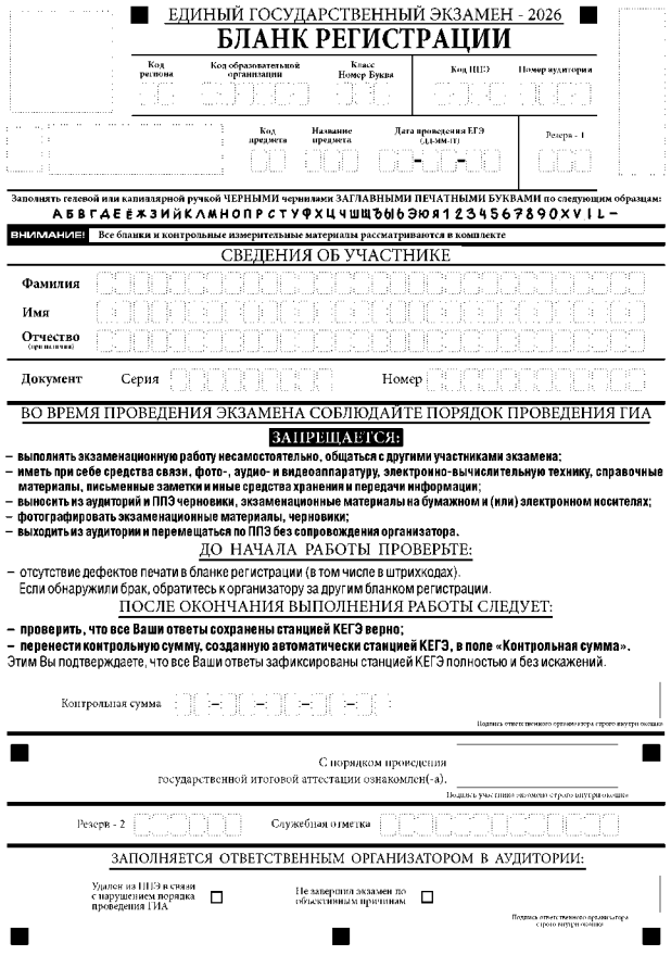 Бланки ЕГЭ-2026